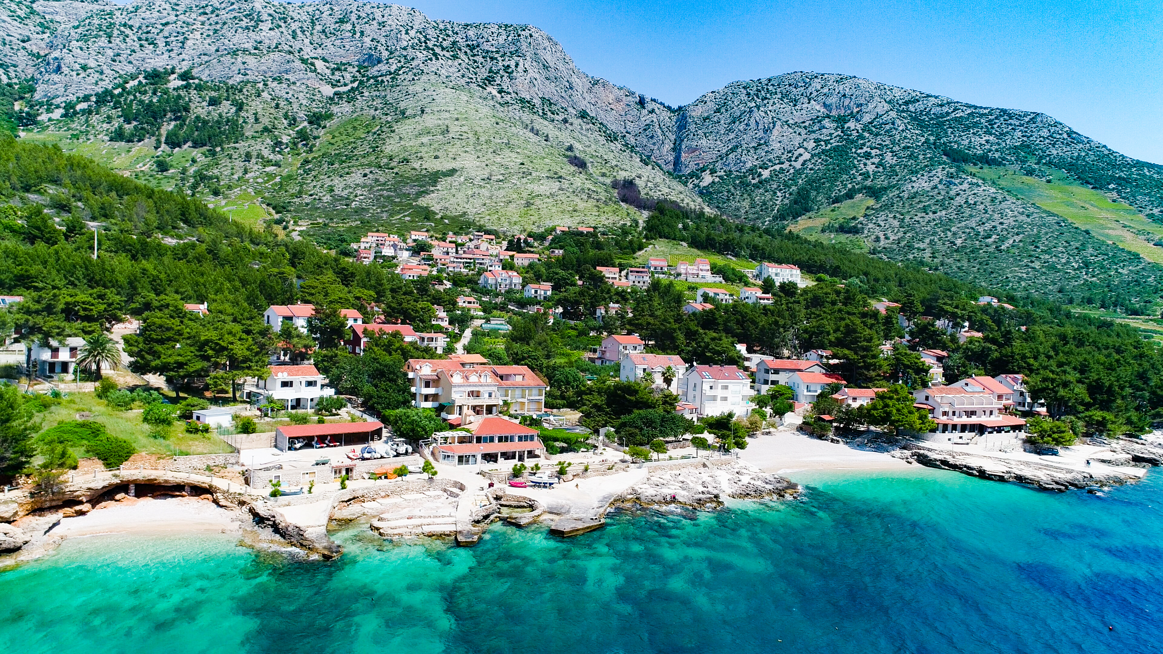 透明度の高い海に面した、イヴァン・ドラッツの町