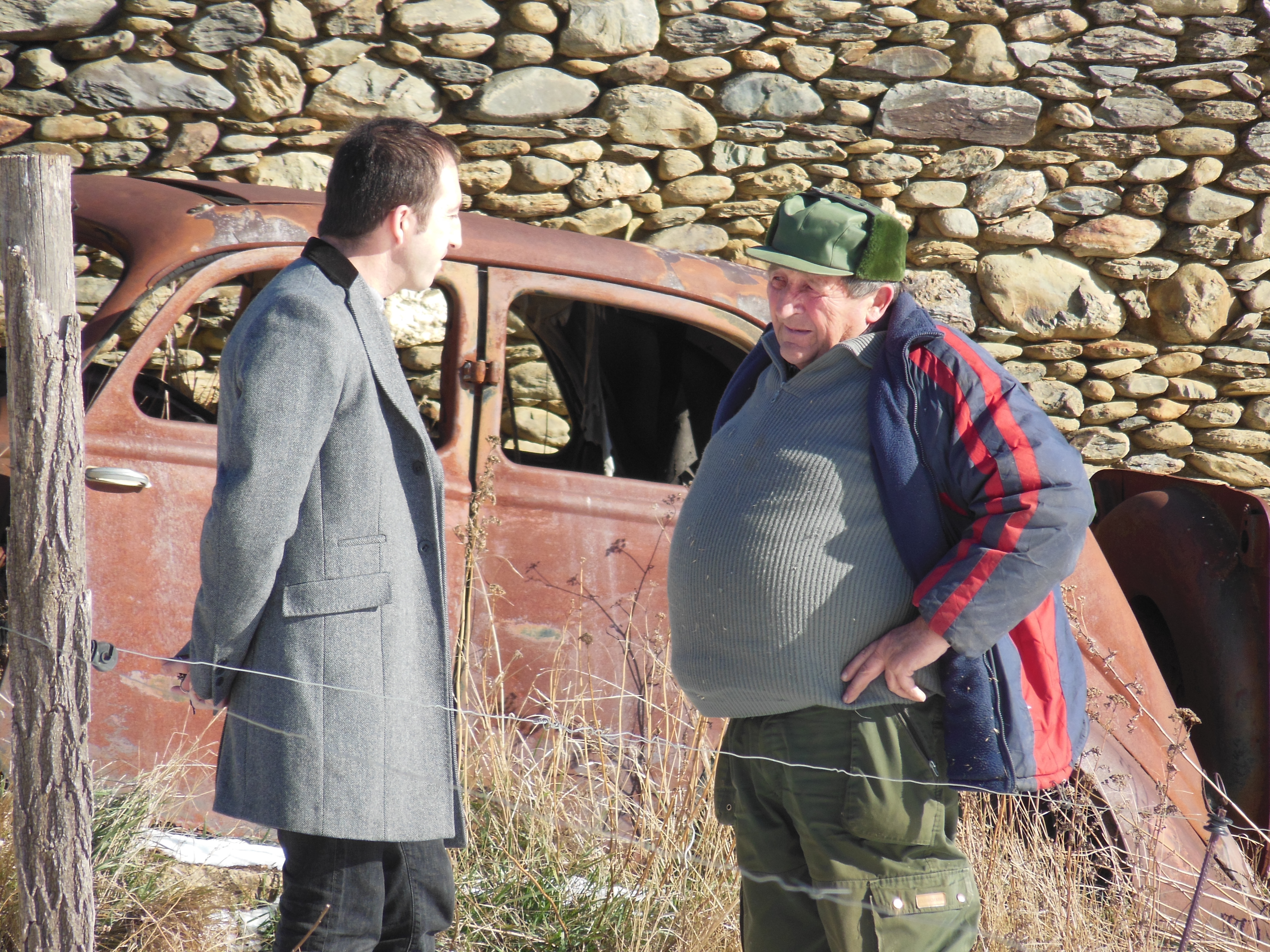 ヨーロッパで一番標高の高いところにあるワイン畑「CLOS CAL MATEU」にて生産者と話をするラファージュ氏