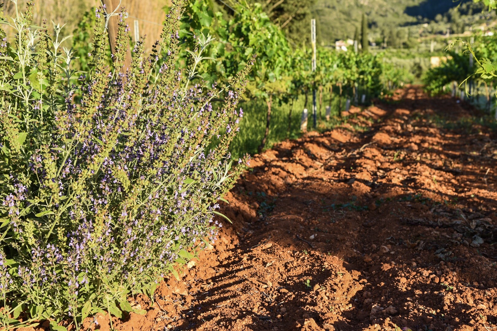 赤土がメインのエンゲラの土。ローズマリーが畑の随所に見られる