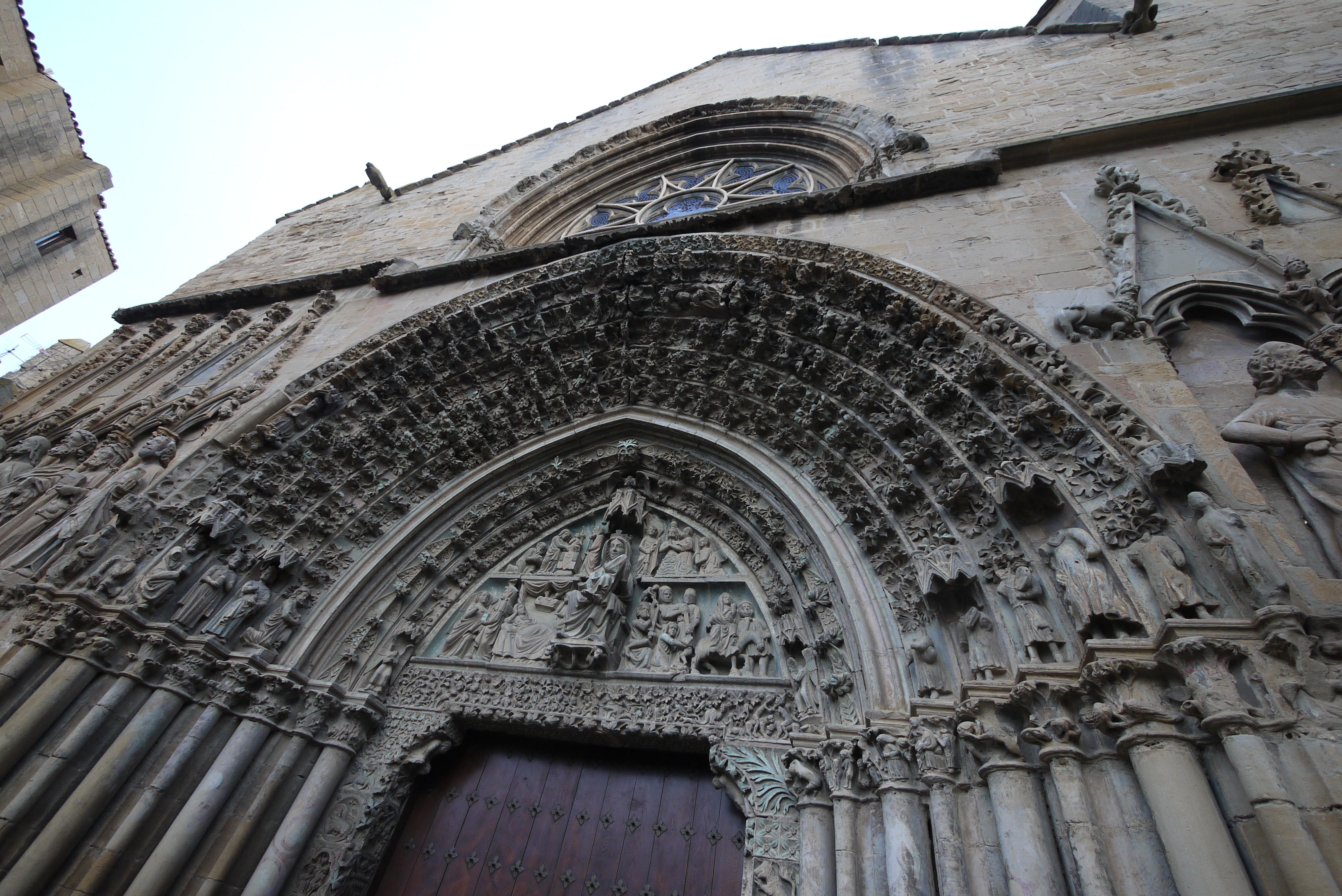 オリテ村の教会、アーチ型の入り口には、葡萄の彫刻がある