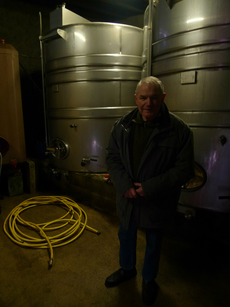 セラーへ戻り、この小さな扉をくぐると、清潔のセラー内にタンクが並んでいます