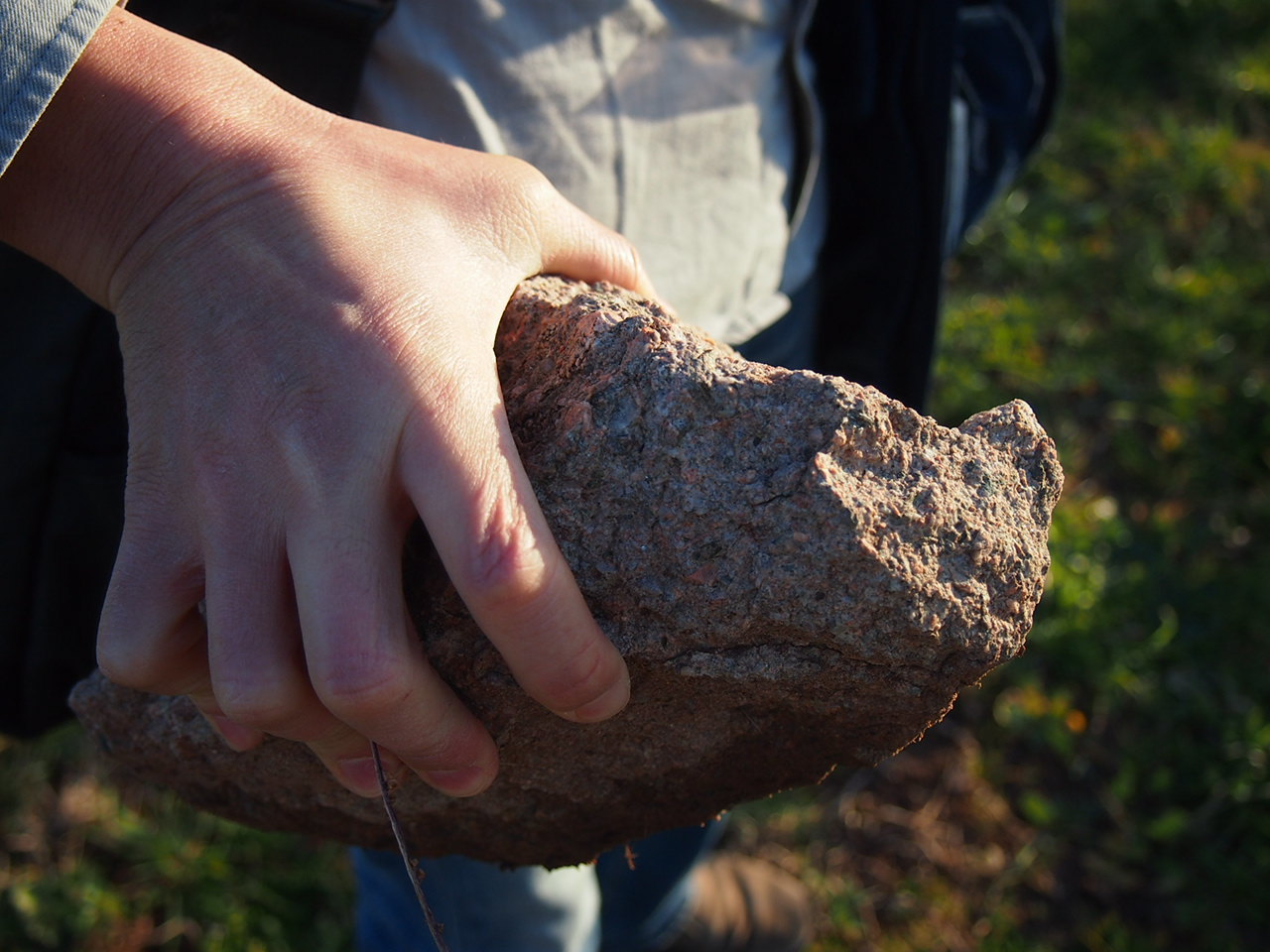 畑には鉄分を含んだ風化しかけの砂岩がたくさんありました。この石が砕けたものが土になっています。