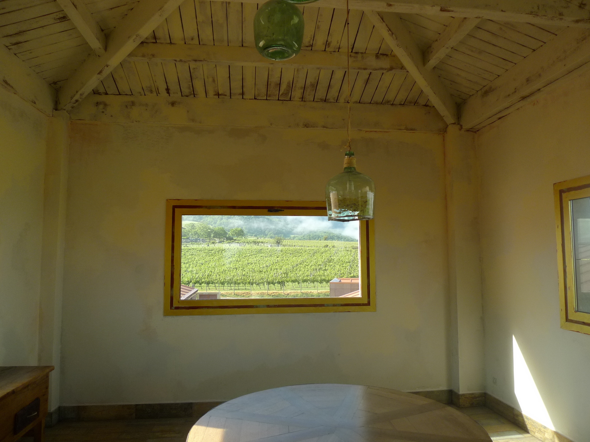 ワイナリー内にあるテイスティングルーム、目の前にはすぐ葡萄畑が広がります