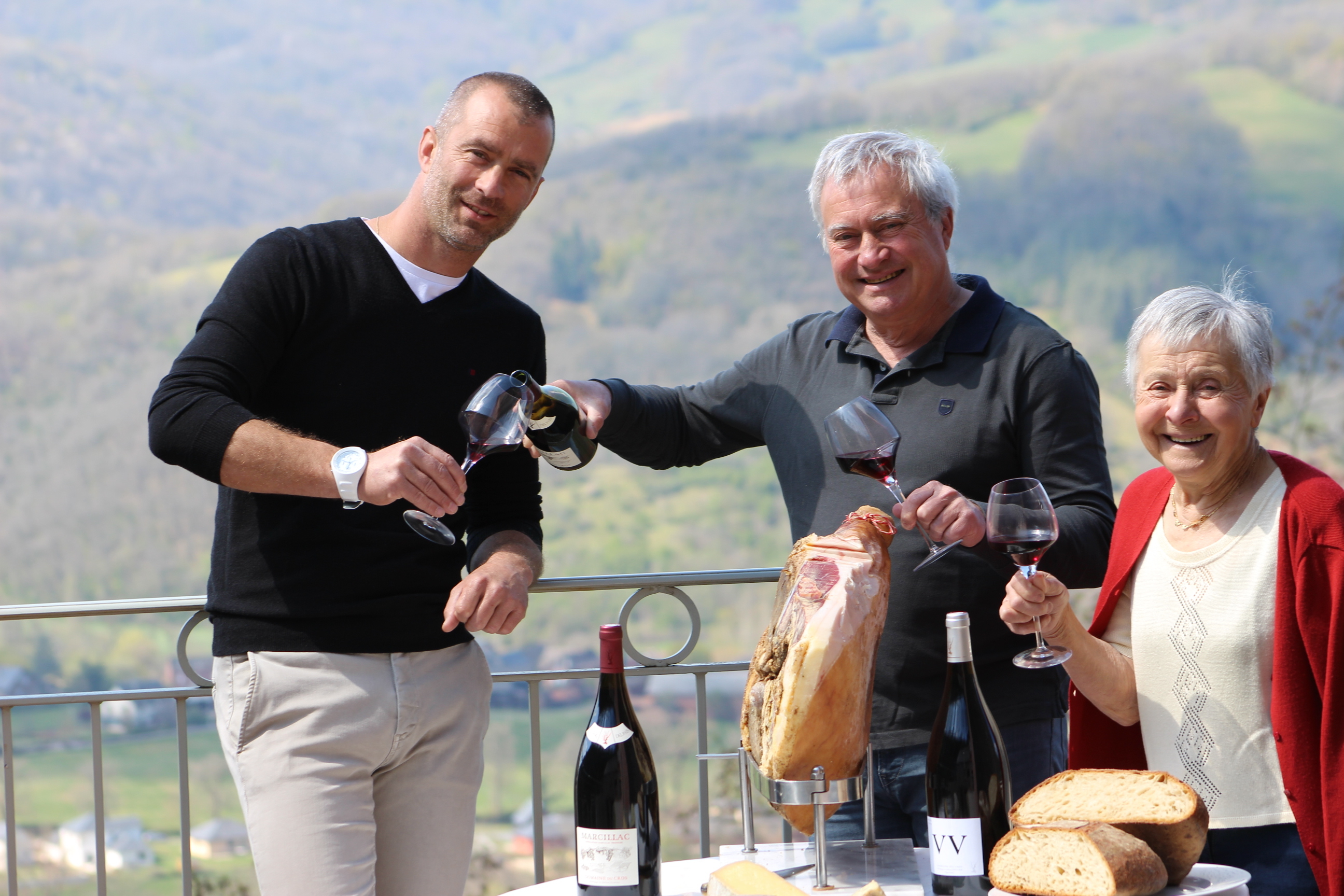 家族団らんの様子(左からジュリアン氏、フィリップ氏、アドリエンヌ氏)