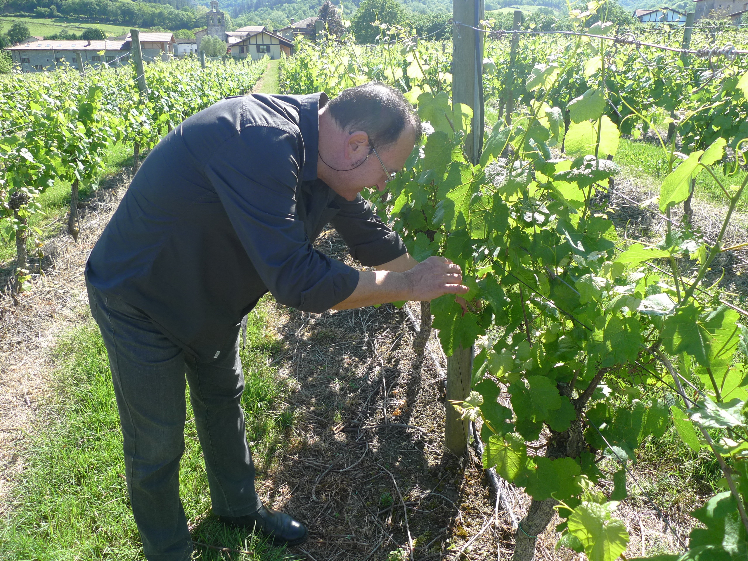 葡萄樹の下側にあるホースは灌漑設備ではなく、4月下旬までは霜が降りる日もあるそうで、霧を出す設備。葡萄芽を氷で覆い守らなくてはいけないそうです