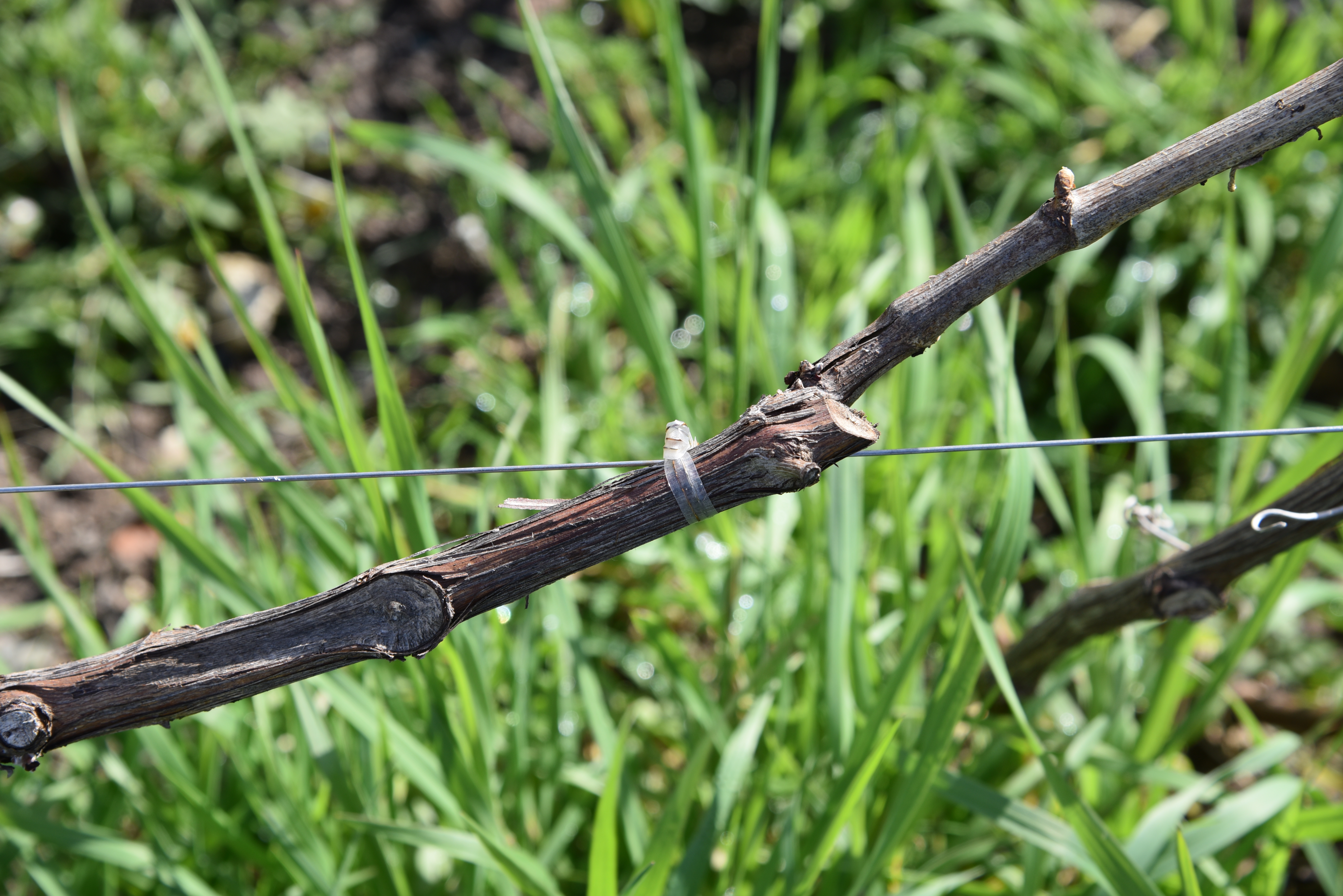 シャトー・ド・アヴィズの目の前にある区画。枝と止めるものは針金ではなく、トウモロコシ繊維から作られたものを使用しています。