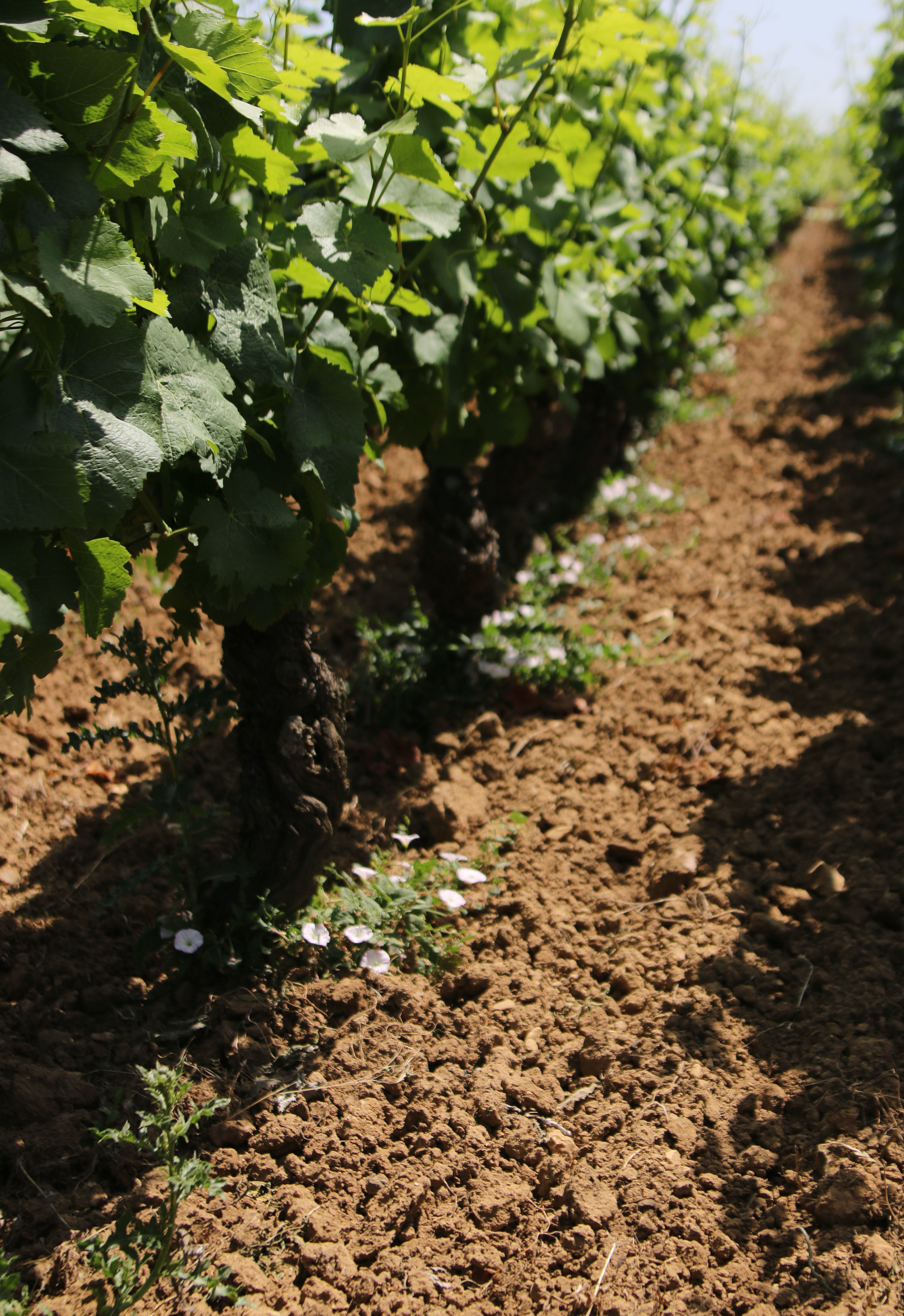 カボット・ヴォーヌ・ロマネ・Vigneuxのオーガニック土壌。黒みを帯びた褐色石灰岩土壌です