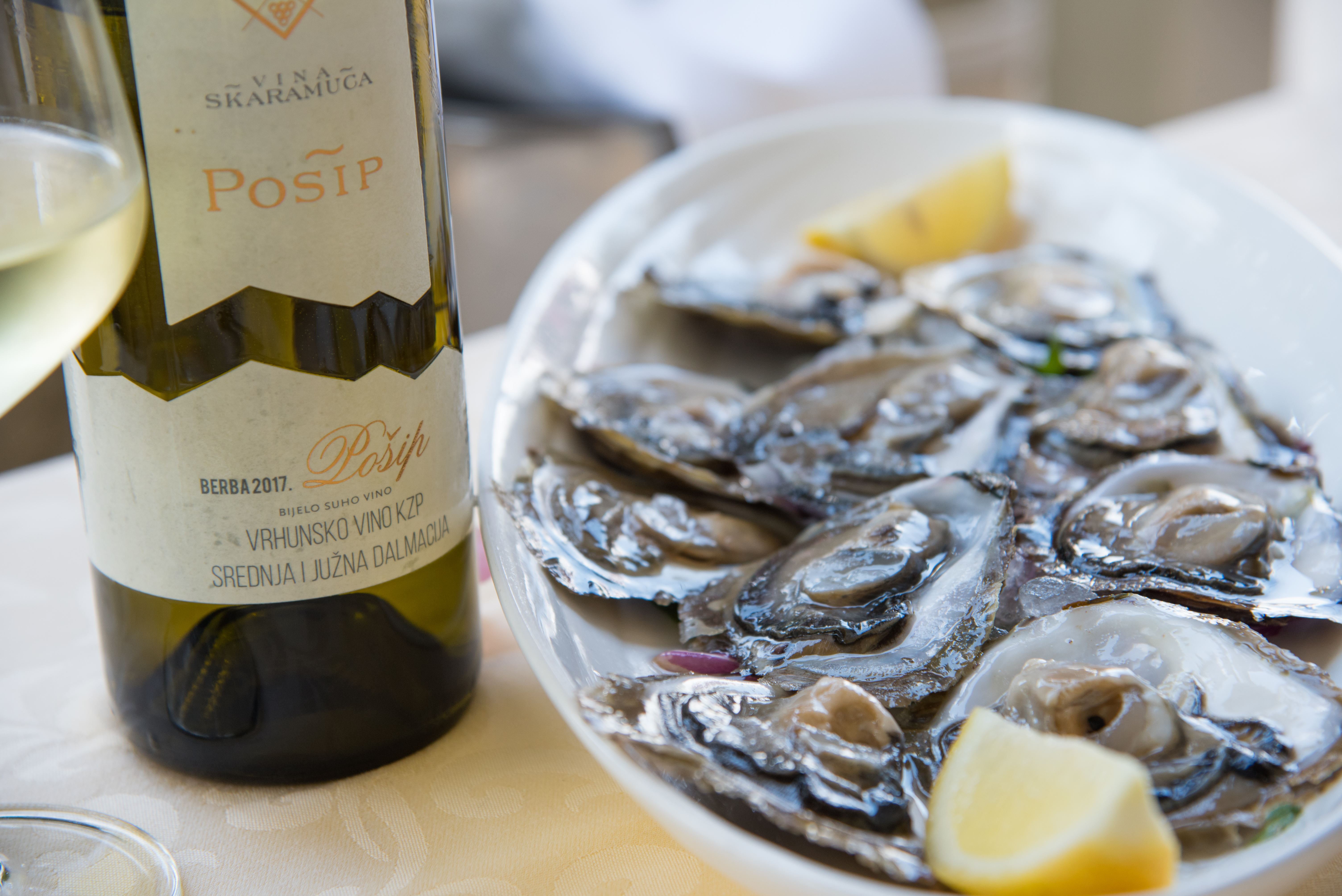 マリストンの生牡蠣とコルチュラ島のポシップ種のワイン
